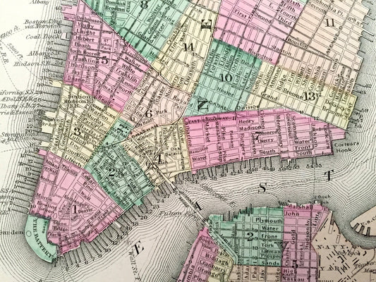 Antique 1874 New York City / Connecticut NY State Map from O.W. Gray's Atlas of United States of America; Stedman, Brown & Lyon – Brooklyn