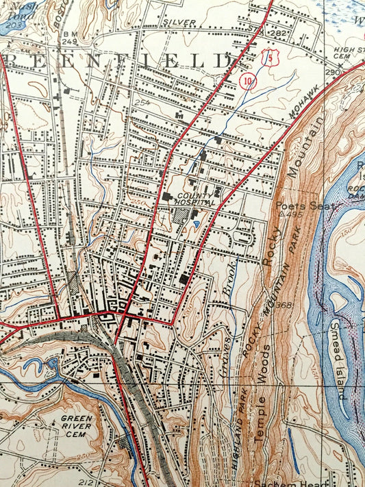 Antique Greenfield, Massachusetts 1941 US Geological Survey Topographic Map – Montague, Turners Falls, Deerfield, Sunderland Gill Wapping MA