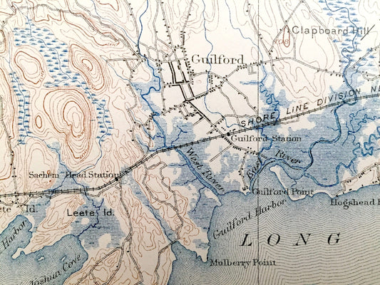 Antique Guilford, Connecticut 1893 US Geological Survey Topographic Map – Madison, Clinton, Killingworth, Durham, Haddam, Saybrook, Coast CT