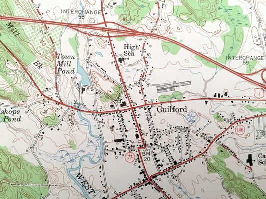Antique Guilford, Connecticut 1954 US Geological Survey Topographic Map – Madison, Branford, North Branford, Stony Creek New Haven County CT