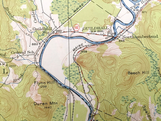 Antique Guildhall, Vermont 1933 US Geological Survey Topographic Map – Stratford, Brunswick Lancaster, Maidstone, Groveton, New Hampshire VT