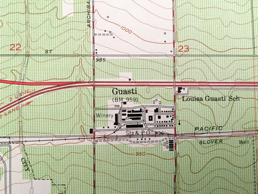 Antique Guasti, California 1953 US Geological Survey Topographic Map – San Bernardino Co, Riverside, Cucamonga, Etiwanda, Jurupa, Mira Loma
