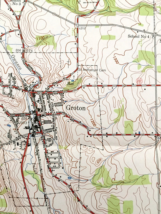 Antique Groton, New York 1942 US Geological Survey Topographic Map – Tompkins County, Locke, Dryden, Red Mills Virgil Freeville Peruville NY