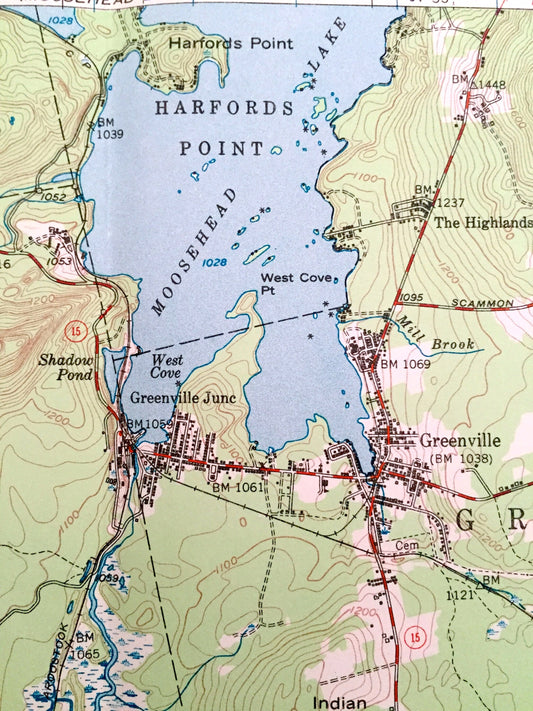 Antique Greenville, Maine 1951 US Geological Survey Topographic Map – Moosehead Lake, Shirley, Elliottsville, Blanchard, Monson, Piscataquis