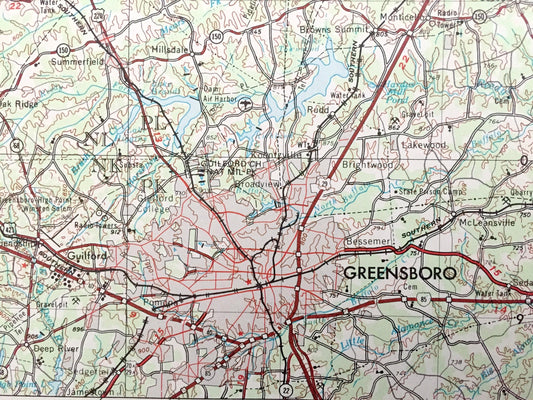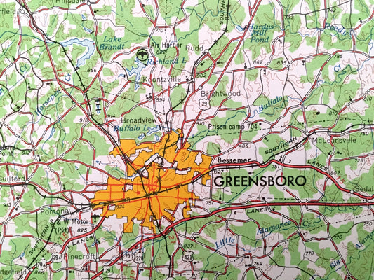 Antique Greensboro, North Carolina 1962 US Geological Survey Topographic Map – Virginia, Burlington, Durham, Reidsville Leaksville Graham NC