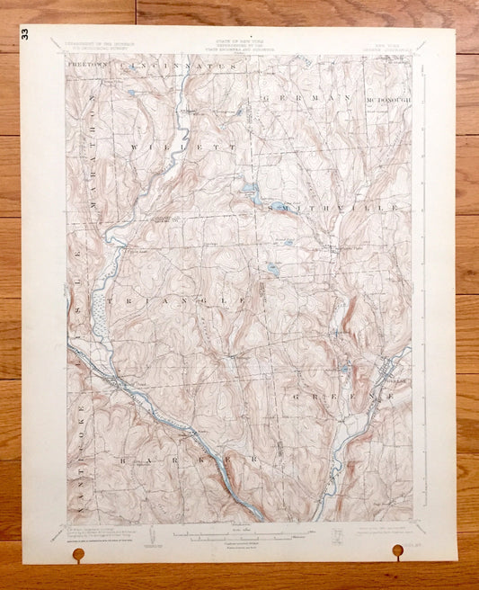 Antique Greene, New York 1904 US Geological Survey Topographic Map – Cortland, Broome, Chenango County, Whitney Point, Willett, Triangle, NY