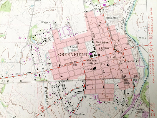 Antique Greenfield, Ohio 1960 US Geological Survey Topographic Map – Highland, Ross County, Madison, Fairfield, Buckskin Paint Creek Lake OH