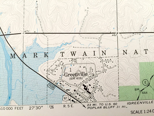 Antique Greenville SW, Missouri 1966 US Geological Survey Topographic Map – Wayne County, Holliday Landing, Mark Twain National Forest, MO