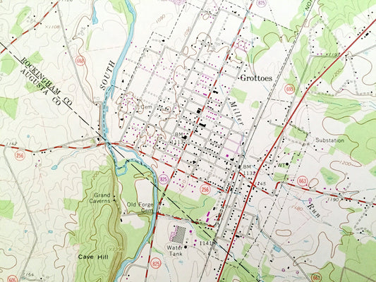 Antique Grottoes, Virginia 1964 US Geological Survey Topographic Map – Rockingham, Augusta County, Shenandoah National Park Port Republic VA