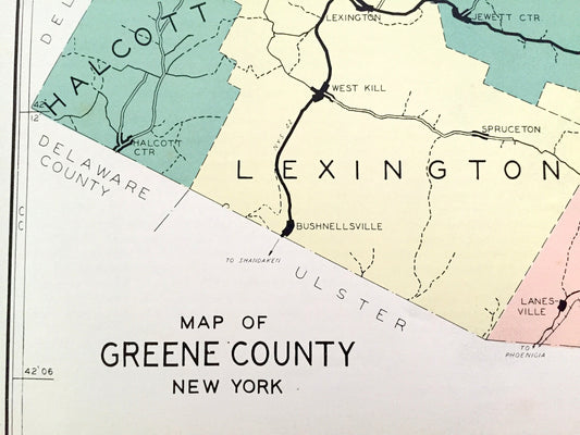 Antique Greene County, New York 1941 Historical Atlas Map – Catskill, Athens, Coxsackie, Cairo, Greenville, Prattsville, West Kill Hudson NY