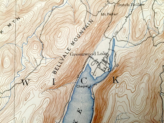 Antique Greenwood Lake, New Jersey & New York 1910 US Geological Survey Map – Warwick, Milford, Vernon, Pompton, Wawayanda, Passaic, Sussex