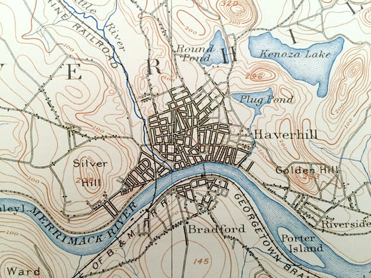 Antique Haverhill, Massachusetts 1893 US Geological Survey Topographic Map – Merrimac, Methuen, Groveland, Rockingham County, New Hampshire