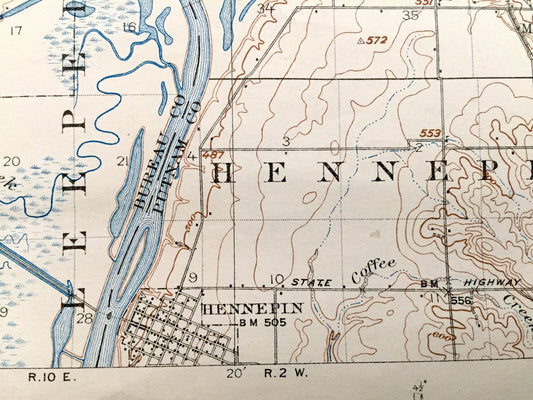 Antique Hennepin, Illinois 1911 US Geological Survey Topographic Map – Princeton, Malden, Seatonville, Depue, Dover, Bond & Putnam County IL
