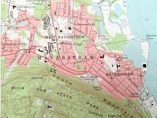 Antique Haverstraw, New York 1967 US Geological Survey Topographic Map – Clarkstown, Cortlandt, Stony Point, Croton, Hudson River Valley