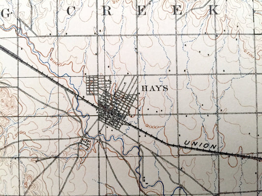 Antique Hays, Kansas 1896 US Geological Survey Topographic Map – Ellis, Big Creek, Catherine, Hartsook, Walker Paradise Victoria Lacrosse KS