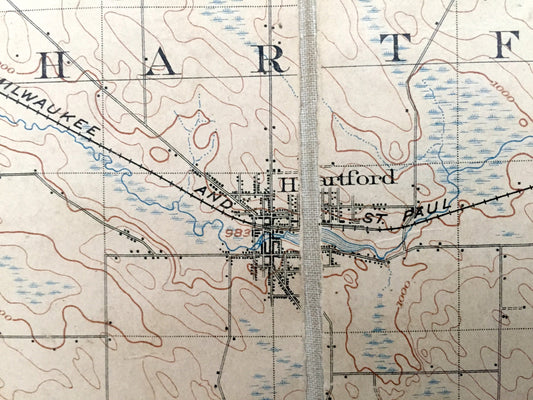 Antique Hartford, Wisconsin 1888 US Geological Survey Topographic Map – Washington, Dodge County, Richfield, Erin, Ashippun, Rubicon Polk WI