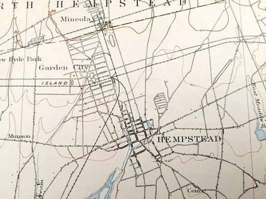 Antique Hempstead, New York 1903 US Geological Survey Topographic Map – Long Island, Nassau County, Freeport, Mineola, Oceanside Woodmere NY