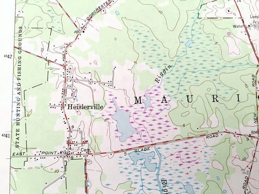 Antique Heislerville, New Jersey 1957 US Geological Survey Topographic Map – Cumberland, Cape May County, Maurice River, Delmont, NJ