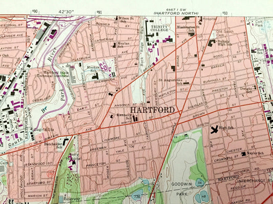 Antique Hartford South, Connecticut 1964 US Geological Survey Topographic Map – Middlesex, Hartford County, Newington, Berlin, Rocky Hill CT