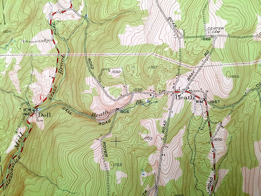 Antique Heath, Massachusetts 1950 US Geological Survey Topographic Map — Franklin County, Rowe, Colrain, MA, Windham County, Whitingham, VT
