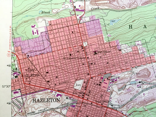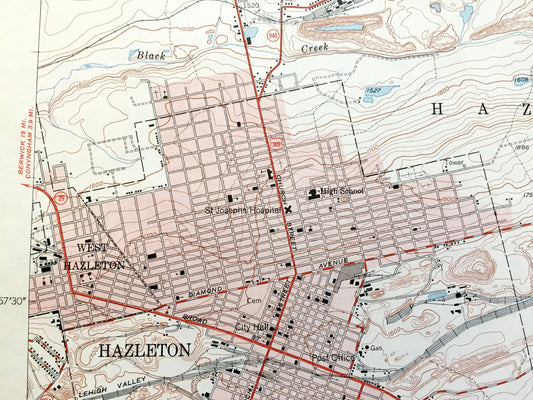 Antique Hazleton, Pennsylvania 1950 US Geological Survey Topographic Map - Luzerne, Carbon, Schuylkill County, Foster, Banks, Packer, PA