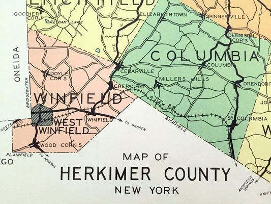 Antique Herkimer County, New York 1941 Historical Atlas Map – Mohawk, Ilion, Little Falls, Grant, Winfield, Atwell, Old Forge, Fairfield, NY