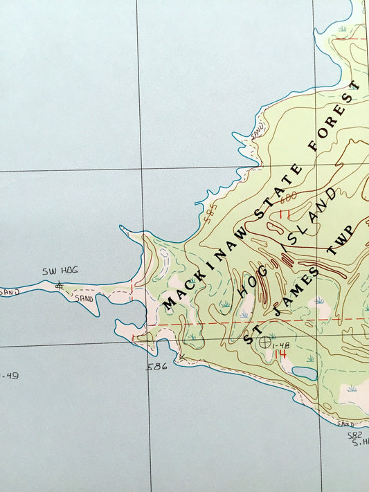 Antique Hog Island, West, Michigan 1986 US Geological Survey Topographic Map – Lake Michigan, Mackinaw State Forest, St James Township