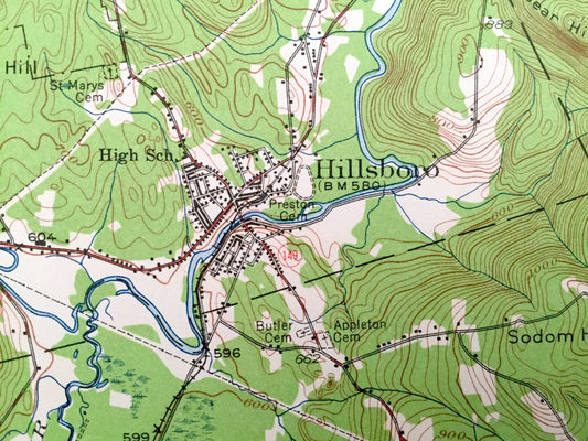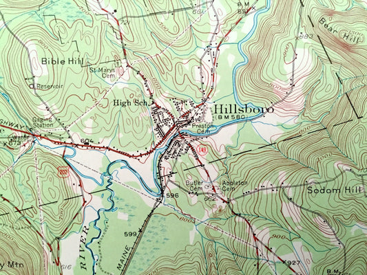 Antique Hillsboro, New Hampshire 1957 US Geological Survey Topographic Map – Merrimack County, Bradford, Warner, Henniker, Deering, Weare NH