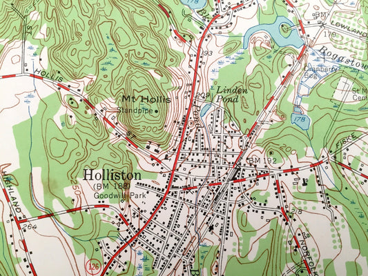 Antique Holliston, Massachusetts 1953 US Geological Survey Topographic Map – Bellingham, West Medway, Hopkinton, Sherborn Millis Franklin MA