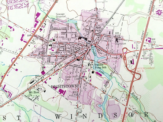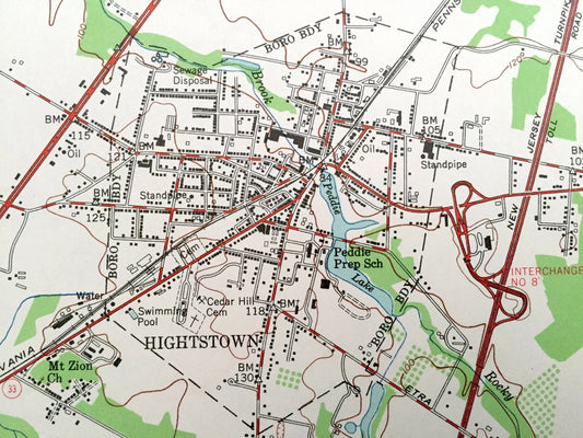 Antique Hightstown, New Jersey 1954 US Geological Survey Topographic Map – Cranbury, South Brunswick, West, East Windsor, Plainsboro, NJ