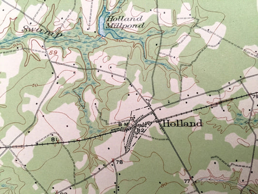 Antique Holland, Virginia 1920 US Geological Survey Topographic Map – Franklin, Riverdale, Delaware, Carrsville, Somerton, South Quay, VA