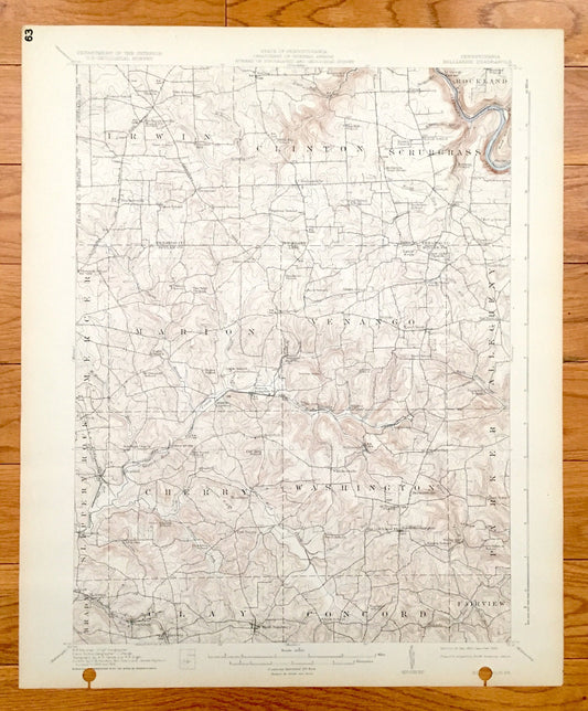 Antique Hilliards, Pennsylvania 1912 US Geological Survey Topographic Map - Washington, Cherry, Clay, Concord, Fairview, Parker, Marion