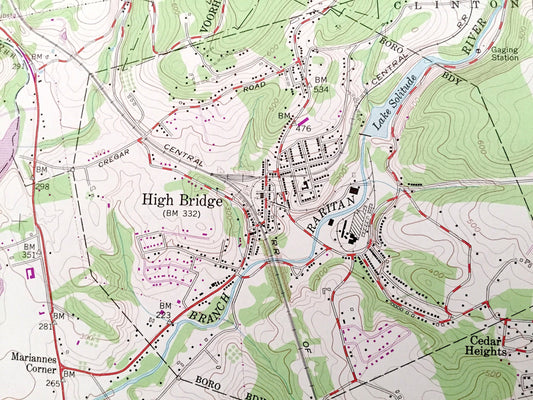 Antique High Bridge, New Jersey 1954 US Geological Survey Topographic Map – Warren, Hunterdon County, Washington, Bethlehem, Lebanon, NJ