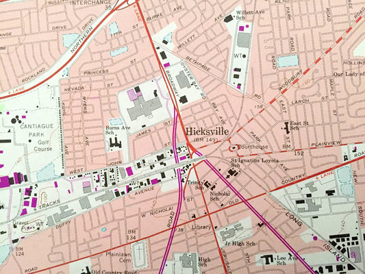 Antique Hicksville, New York 1967 US Geological Survey Topographic Map – Nassau County, Glen Cove, Oyster Bay, North Hempstead, Jericho, NY