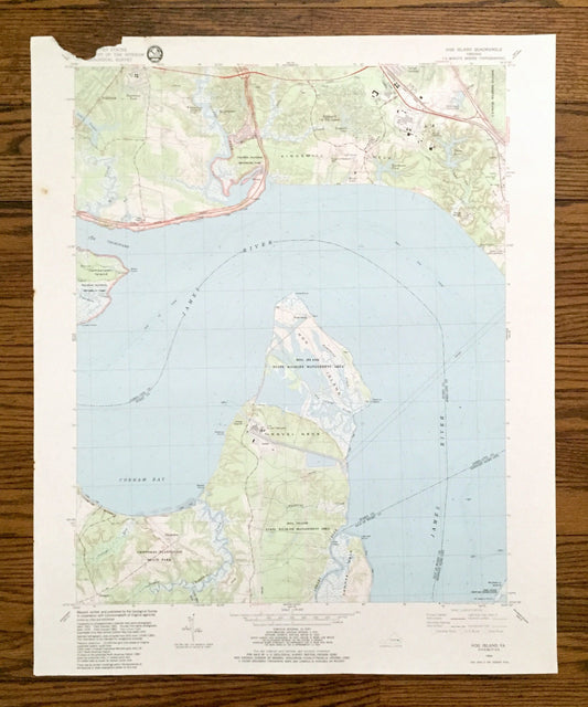 Antique Hog Island, Virginia 1984 US Geological Survey Topographic Map – Surry, James City County, James River, Jamestown, Kingsmill VA