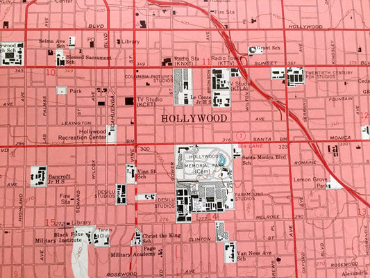 Antique Hollywood, California 1966 US Geological Survey Topographic Map – Los Angeles, San Rafael, Las Cienagas, La Brea, Griffith Park, CA