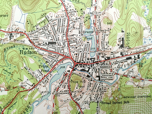 Antique Hudson, Massachusetts 1950 US Geological Survey Topographic Map – Boxborough, Harvard, Bolton, Stow, Marlborough, Fryville Berlin MA