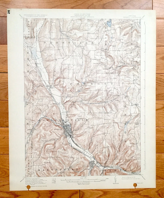Antique Hornell, New York 1918 US Geological Survey Topographic Map - Hartsville, Almond, Howard, Fremont, Wayland, Cohocton, Dansville, NY