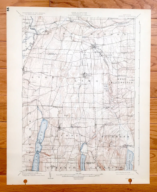 Antique Honeoye, New York 1904 US Geological Survey Topographic Map - Mendon, Rush, Wheatland, Avon, Lima, Caledonia, Richmond, Genesee, NY