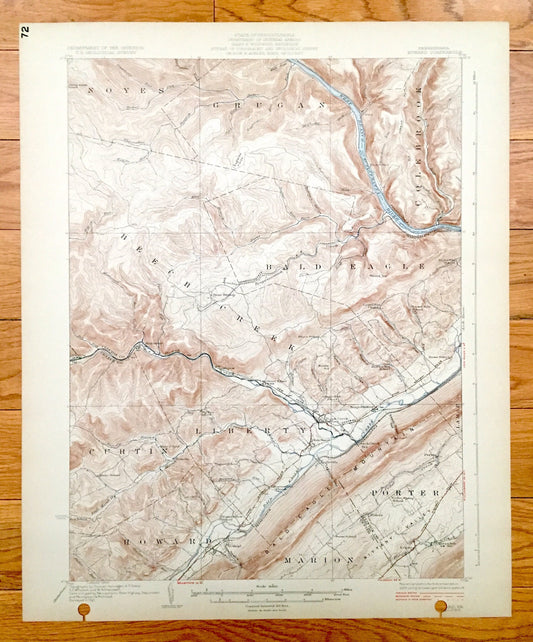 Antique Howard, Pennsylvania 1923 US Geological Survey Topographic Map – Centre, Clinton County, Marion, Porter, Liberty, Beech Creek, PA