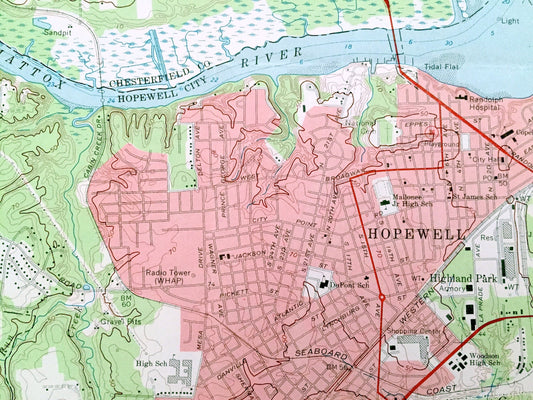 Antique Hopewell, Virginia 1969 US Geological Survey Topographic Map – Chesterfield, Charles City County, Fort Lee Army Base, James River VA