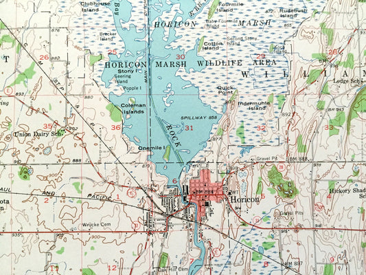 Antique Horicon, Wisconsin 1955 US Geological Survey Topographic Map – Dodge County, Sinissippi Lake, Marsh Wildlife Area, Juneau, Mayville