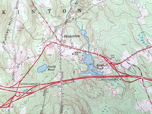 Antique Hopkinton, New Hampshire 1967 US Geological Survey Topographic Map – Merrimack, Hillsborough County, Contoocook, Everett Lake, NH