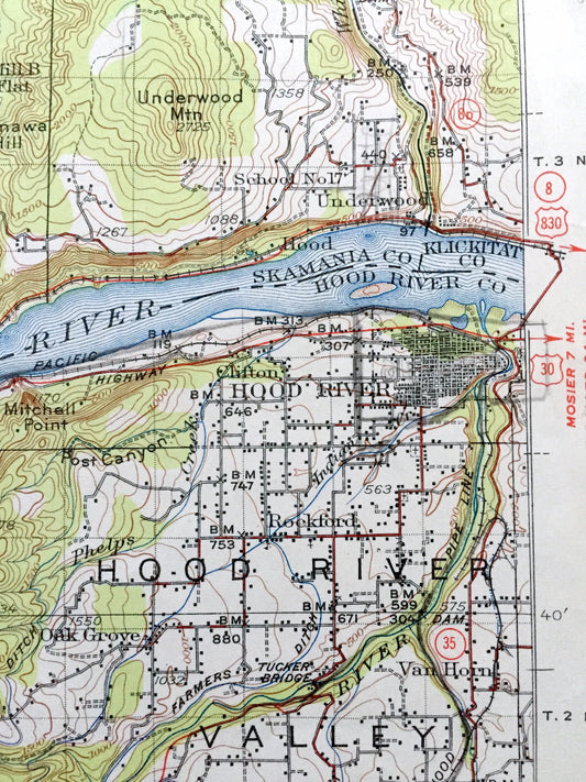 Antique Hood River, Oregon 1926 US Geological Survey Topographic Map – Skamania County, Columbia River, Cascade Range, Carson, Washington OR