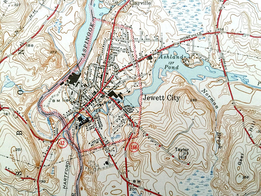 Antique Jewett City, Connecticut 1953 US Geological Survey Topographic Map – New London County, Griswold, Preston, North Stonington, CT