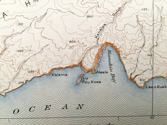 Antique Kahoolawe, Hawaii 1929 US Geological Survey Topographic Map – Makawao District, Heiau, Molokini, Kealaikahiki Kanapou Honokoa Bay HI