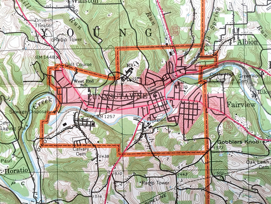 Antique Jefferson County, Pennsylvania 1974 Geological Survey Map – Brookville, Punxsutawney, Big Run, Reynoldsville, Brockway Sykesville PA