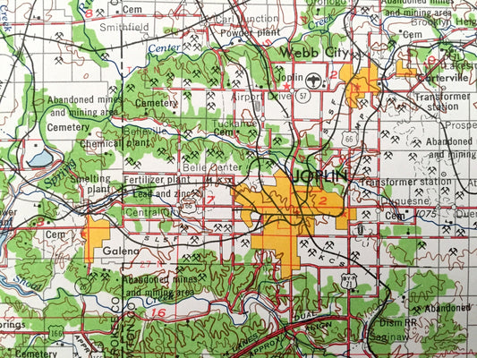 Antique Joplin, Missouri 1959 US Geological Survey Topographic Map – Webb City, Carthage, Sarcoxie, Jasper, Golden City Lamar Carterville MO