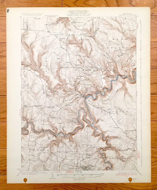 Antique Karthaus, Pennsylvania 1932 US Geological Survey Topographic Map - Graham, Cooper, Snow Shoe, Burnside, Covington, Girard, Gibson