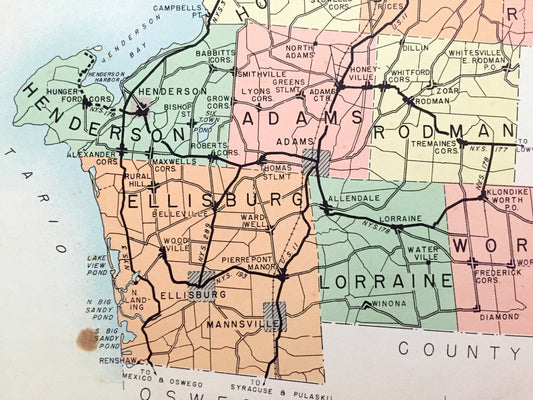 Antique Jefferson County, New York 1941 Historical Atlas Map – Watertown, Sackett's Harbor, Alexandria Bay, Clayton, Chaumont, Carthage, NY
